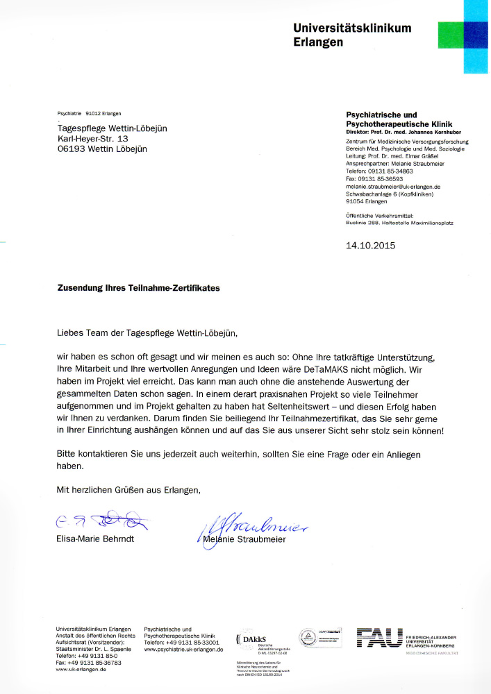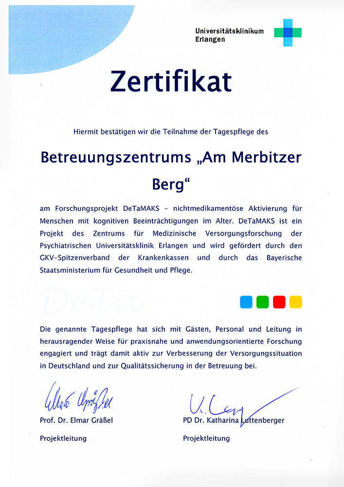 Mit einer Benotung von 1,8 gehört das Betreuungszentrum trotz derzeitiger Umstellung auf die „Strukturierte Informationssammlung- kurz SIS" zu den führenden Pflegediensten in unserer Region.