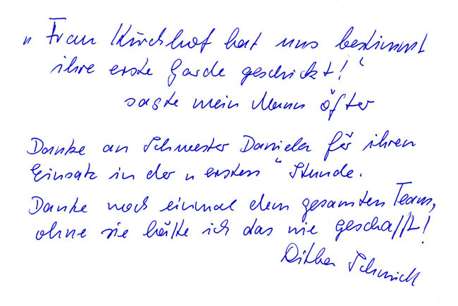 Sehr geehrte Frau Kirchhof, liebes Pflegeteam,